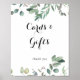 Ce panneau de cartes et cadeaux délice de feuillage d'eucalyptus est parfait pour un mariage moderne ou une fête de fiançailles. Le design présente un élégant eucalyptus botanique dessiné à l'aquarelle à la main, inspirant la beauté naturelle.