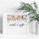 Conçu pour correspondre à notre collection de mariages de mi-été, cet élégant panneau floral dirige les invités vers votre carte ou table cadeau. Caractéristiques "cartes & cadeaux" en calligraphie bleu-gris fumé avec une bordure supérieure de fleurs pastel aquarelle et feuillage en rose vif, ivoire, pêche et vert sauge.