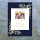 Une élégante célébration de vie, panneau de service funéraire mémorial comportant un feuillage botanique aquarelle sur fond bleu marine. Conçu par Thisisnotme©