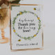 Panneau de faveur avec une couronne aquarelle de verdure et de fleurs jaunes avec des abeilles qui bourdonnent et les mots "Hey Honey, merci d'être là" dans un script amusant.