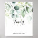 Ce panneau de faveurs de feuillage d'eucalyptus aquarelle est parfait pour un mariage rustique ou une fête de mariage. Ce design artistique présente un feuillage vert d'eucalyptus peint à la main à l'aquarelle, inspirant la beauté naturelle.