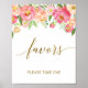 Ce panneau de faveurs de fleurs de pêcher et de pivoines roses est parfait pour un mariage élégant ou une baby shower. Le design floral présente une belle composition de pivoines aquarelles dans des nuances de rose et de corail assorties à une calligraphie en faux or délicate.