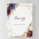Ce panneau de faveurs de mariage géométrique rustique doré est parfait pour un mariage moderne ou une douche de mariée. Le design présente des fleurs aquarelles dessinées à la main violet, marine, rose pâle, bordeaux, marine, des feuilles vertes et dorées ornant un cadre géométrique élégant.