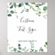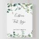 Ce panneau de feuillage vert d'écriture calligraphique de texte personnalisé est parfait pour un mariage élégant ou une fête de douche de mariée. Le design présente des branches et des feuilles de eucalyptus botaniques élégantes dessinées à la main à l'aquarelle, disposées en de beaux bouquets et motifs géométriques.