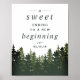 Les clients Invitations pourront déguster des bonbons avec notre charmante enseigne de table à dessert mariage rustique. 11x14 signe de table dessert avec une bordure inférieure de pins à feuillage persistant dans des tons riches de vert chasseur, avec "une fin douce à un nouveau début" en lettrage noir. Personnalisez avec votre date de mariage sous l'inscription.