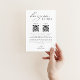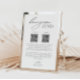 Ce design minimaliste présente une belle calligraphie qui ajoute une touche de sophistication à votre journée spéciale. Idéalement équipé de deux codes QR pour des paiements mobiles en douceur, les clients peuvent contribuer sans effort à votre lune de miel de rêve avec une simple numérisation. Idéal pour le couple moderne à la recherche d'un mélange de style et de fonctionnalité, ce panneau sert non seulement de décor chic mais aussi de moyen mémorable d'impliquer vos proches pour rendre votre escapade post-mariage vraiment inoubliable.