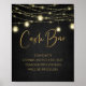 Les boissons de ce soir ne sont pas gratuites, mais les histoires de demain seront inestimables. Design moderne avec des cordes de lumières brillantes sur arrière - plan de tableau noir. Panneau de caisse. Bar de réception. Partie d'une collection. Éléments correspondants disponibles.