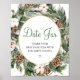 Jeu de salle de mariage rustique de pin aquarelle et de verdure d'hiver - Panneau de jeu de salle de mariage de pot de date