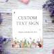 Féminin et moderne, ce panneau de fête peut être personnalisé pour votre mariage. Le design présente un beau jardin de fleurs aquarelles roses et violettes comprenant des roses, des tulipes, de la lavande et de la verdure d'eucalyptus avec des papillons aux couleurs vives et des abeilles bourdonnantes qui volent autour.