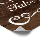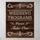 Panneau de programme de cérémonie rustique avec un motif de fond en bois.