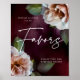 De belles fleurs peintes sur un fond sombre peint associées à une typographie élégante donnent à ce panneau de réception de mariage sur table pour les "faveurs" une atmosphère sombre, mystérieuse et romantique. Modifiez simplement le modèle avec vos informations et choisissez les options souhaitées. Les articles de mariage coordonnés sont disponibles dans notre magasin ou consultez la collection de designs...