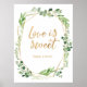 Magnifique panneau floral verdure 'L'amour est doux' en feuille d'or et aquarelles.