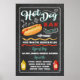 Affiche de menu de bar à hot-dog sur tableau noir pour votre prochaine fête. Caractéristiques d'un délicieux hot-dog dans un pain avec des polices amusantes. Toute la formulation peut être modifiée sous les images de la nourriture.