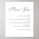 Ce panneau de menu de bar simple et élégant sera incroyable lors de votre mariage, douche ou fête ! Il présente des polices serif et sans-serif épurées et simples avec une police d'accentuation manuscrite. Personnalisez-le avec vos boissons et les breuvages que vous souhaitez servir et le nom des mariés si nécessaire.