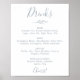 Poster Panneau de menu de boissons de mariage bleu poussi