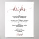 Ce panneau de menu de boissons en calligraphie simple en or rose est parfait pour un mariage moderne. Le design minimaliste présente une police de caractères élégante à l'aspect pinceau et un cœur féminin charmant avec un faux feuillet d'or rose. Personnalisez le panneau avec les boissons disponibles à votre réception.