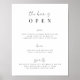 Invitation vos invités à prendre une libation préférée du bar avec notre charmant panneau de menu de bar mariage. L'affiche 11x14 affiche "le bar est ouvert" en écriture de calligraphie noire et en lettres de bloc. Personnalisez avec vos sélections de boissons sous.