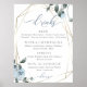 Fleurs bleues poussiéreuses pour correspondre à votre thème de mariage, Ceci est pour un menu de bar complet - avec beaucoup de choix personnalisé selon votre menu bien sûr. Des roses aquarelles, des feuilles et des baies dans un bleu poussiéreux chic moderne entourent un cadre géométrique en or de style terrarium avec de la verdure sauge. Personnalisez le texte, le style de police, la couleur et la taille. Œuvre d'art originale créée pour le BarefootBride™ par © WhimsicalArtwork™ - Cela fait partie d'une suite complète de papeterie de mariage avec papeterie de mariage, de baby shower et d'autres événements assortis.