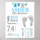 Poster Panneau de naissance pour bébé garçon bleu avec em