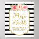 Panneau de photomaton pour baby shower, mariage ou enterrement de vie de jeune fille dans un motif classique à rayures noires et blanches avec une bordure dorée, des fleurs aquarelles roses et pêche rustiques et des lettrages de style manuscrit. Parfait pour une baby shower, un mariage ou un enterrement de vie de jeune fille.