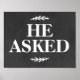Poster Panneau de Proposition de Mariage Il a Demandé