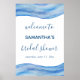 Ce dessin élégant et gracieux est une aquarelle peinte à la main dans des nuances de bleu clair, de bleu classique et de bleu marine. Le design abstrait ressemble à des vagues océaniques, parfait pour une douche nuptiale sur le thème de la plage, de l'océan ou de la marine. Ajoutez facilement le nom de la mariée et la date de l'événement à ce magnifique panneau de fête de 60 x 90 cm.
