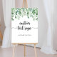 Ce panneau de texte personnalisé à la calligraphie minimaliste eucalyptus est parfait pour un mariage rustique ou une fête prénuptiale. Le design présente des eucalyptus verts peints à la main à l'aquarelle, inspirant une beauté naturelle.