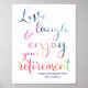 Vivez, riez et profitez de votre retraite. Un magnifique panneau d'aquarelle coloré parfait pour votre retraite ou comme cadeau pour un collègue à la retraite. Personnalisez avec votre propre message pour la personne retraitée.