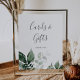 Ce panneau vert émeraude est parfait pour un mariage boho ou une douche nuptiale. Le design élégant et rustique présente des feuilles d'aquarelle vert foncé moody et des eucalyptus aux tons bohèmes modernes. La ligne de texte en bas du panneau peut être personnalisée avec la date, les noms de la mariée et du marié, ou un message court comme "Merci". Ce signe peut être utilisé pour un mariage, un événement ou une fête.