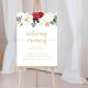 Ce panneau fleurs classiques en or en souvenir est parfait pour un mariage rustique ou une fête prénuptiale. Le design présente des fleurs et des baies aquarelles blanches, bordeaux et or avec un feuillage vert disposé en bouquets élégants.