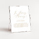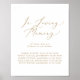 Ce panneau mémorial de mariage mémoire amoureuse or délicat est parfait pour un mariage moderne. Le design minimaliste romantique présente une typographie jaune doré champagne élégante et charmante sur fond blanc avec un aspect propre et simple.