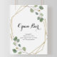 Ce panneau de calligraphie géométrique or mariage à barre ouverte est parfait pour un mariage rustique. Le design présente des branches d'eucalyptus vert botanique dessinées à la main et des feuilles ornant un élégant cadre géométrique.