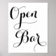 Calligraphie noir et blanc Open Bar signe de réception de mariage (affiche). Les dimensions de l'affiche sont de 11 pouces sur 14 pouces.