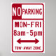 Pas de parking du lundi au vendredi de 8 h à 17 h panneau routier du type utilisé dans les villes américaines.