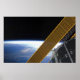 Panneaux solaires sur la Station Spatiale Internationale rétroplacés contre l'horizon terrestre avec STS-126.
