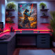 Un guerrier mystique de panthère est prêt à se battre, brandissant un katana éblouissant et imprégné d'énergie cosmique. Orné d'une armure de samouraï ornée, ce combattant interstellaire exhale force et sagesse, prêt à défendre le royaume céleste. Le champ de bataille enflammé contraste avec un ciel profond avec des lunes rouges jumelles, créant une fusion épique de la tradition guerrière japonaise et de l'imaginaire de science-fiction. Une représentation stupéfiante du pouvoir, de l'honneur et de la mystique intergalactique.