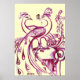 Poster PAONS EN AMOUR, Rouge et Crème