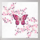Poster Papillon et fleurs de cerisier roses et blanches