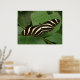 Cette belle affiche présente une photo d'un beau papillon tropical. Cette espèce est appelée papillon à aile longue Zebra (Heliconius charithonia) et est recouverte de rayures vives en noir et blanc sur chaque aile. Il vient d'Amérique. La photo a été prise en utilisant la macro photographie pour un résultat étonnamment détaillé.