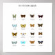 Une sélection de 16 types différents de papillons. Chacun porte un nom commun et un nom scientifique.