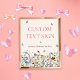 C'est un signe de table doux et bohème pour un baby shower. Customisez facilement le texte de ce panneau pour tout ce dont vous avez besoin, par exemple une tombola de couche, une chasse à la sucette, etc. Le design se compose de papillons doux et capricieux et d'abeilles au-dessus d'un champ de beaux floraux fleurs sauvages estivaux délicats dans de jolies nuances de bleu, de terre cuite, rose, rouille, violet et jaune. Veuillez contacter le concepteur pour toute modification de ce design ou pour des produits complémentaires.