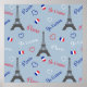 Seamless Paris text illustration with Eiffel Tower, tricolor heart shapes and French flag decoration on blue background for Valentine's Day