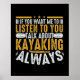 Un superbe kayak design T-shirts, posters, sacs, planificateurs, et plus parfait pour tous ceux qui aiment le kayak, dispose de texte d'or et blanc qui dit Si vous voulez que je vous écoute Parlez de Kayak...Toujours!