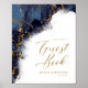 Un arrière - plan abstrait qui évoque le marbre dans les tons bleu marine veiné d'or brillant est la toile de fond de textes élégants et de mises en page design moderne dans les pièces de cette belle suite mariage. Le panneau mariage ci-dessus comprend le texte du script courant facultatif ci-dessus de 'Livre d'Invité' et un modèle pour ajouter les noms de la mariée et du marié et la date du mariage. Recherchez ID644 pour voir toutes les pièces de coordination de cet ensemble.