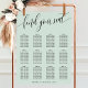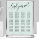 Bienvenue à vos invités avec cet élégant tableau de sièges mariage vert menthe pastel. Doté d'un design minimaliste et d'un script moderne qui dit trouver votre siège, ce tableau de sièges est parfait pour un mariage élégant et sophistiqué. Les couleurs douces et la disposition soignée confèrent à vos hôtes un aspect raffiné et organisé, leur permettant de trouver facilement leur place. Customisez avec vos noms et vos arrangements de table pour créer un ajout unique et cohérent à votre décor mariage. Ce tableau de sièges peut accueillir jusqu'à 12 tables, ce qui en fait l'endroit idéal pour une célébration bien planifiée et élégante.