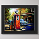 Poster Pastel Sketch Gare Vintage Voitures