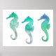 Poster Pastel Vert Aquarelle Hippocampes