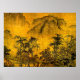 Cette affiche d'art raffiné donne l'impression d'un paysage oriental ancien. Deux petites figures marchent à travers les arbres vers une pagode au premier plan. Les montagnes se dressent au loin. Les couleurs de l'automne sont l'or, le jaune, l'orange, le vert, le marron et le noir.