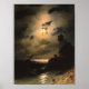 Peinture à l'huile d'Ivan Aivazovsky, montrant une scène de nuit sur la lune de plage illuminée de la côte, avec des falaises une tour de guet, et une épave.
