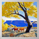 Maynard Dixon était un artiste autodidacte dont les compositions puissantes se concentraient sur les cultures et les paysages du sud-ouest au début du XIXe siècle. Ce film s'appelle "Paix en octobre" et représente deux chevaux qui broutent sous un arbre d'automne.